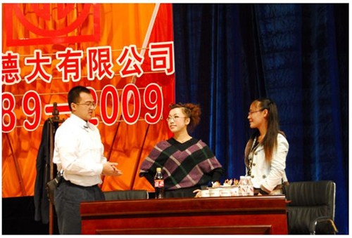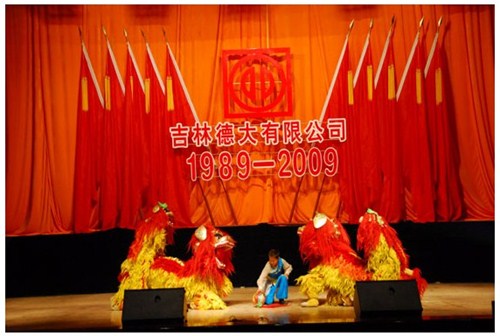 舉世同歡,六十載華夏慶盛世太平, 載歌載舞,二十年德大賀巨龍騰飛。 金秋九月,碩果飄香。在這收獲的季節(jié),我們迎來了偉大祖國六十周年慶典,同時也迎來了吉林德大有限公司成立二十周年華誕,我們祝福偉大祖國繁榮富強,祝福德大公司事業(yè)蒸蒸日上。 二00九年九月二十八日,中共吉林德大有限公司黨委、工會、共青團委、婦委會在德惠市文化宮聯(lián)合舉辦“慶祝吉林德大有限公司成立二十周年暨表彰百日競賽先進集體、先進個人大會”。大會從下午一時開始,共進行了四個小時。大會由中共吉林德大有限公司黨委書記陳玉和主持。參會的公司領(lǐng)導(dǎo)有:于建平總裁、劉繼仲副總裁、唐彬副總裁、董事會殷淑蓮董事等,公司總部、各事業(yè)部主管及員工參會,參會總?cè)藬?shù)近800人。 大會共進行五項議程。 首先由于建平總裁發(fā)表重要講話,于總裁向全體員工表示衷心的感謝,感謝全體員工多年來為公司做出的巨大貢獻,同時向大家表示節(jié)日的祝賀,并回顧了公司發(fā)展的歷程,對公司今后的發(fā)展提出了新的要求和希望。 接下來公司黨委副書記劉忠臣宣讀了表彰決定,對在“振興德大、從我做起”百日競賽活動中涌現(xiàn)出的先進集體及先進個人進行表彰,由主席臺就坐的各位領(lǐng)導(dǎo)向獲獎的先進集體和先進個人頒獎。共評選出先進集體6個、先進個人98人,其中優(yōu)秀黨員15人,優(yōu)秀團員 9人,青年突擊手10人,巾幗標(biāo)兵22人,勞動模范21人,生產(chǎn)能手21人,由食品事業(yè)品管部高鳳紅代表先進集體和先進個人講話,她代表先進集體和個人表達了繼續(xù)努力,為公司發(fā)展做貢獻的決心。先進集體、先進個人的表彰起到了鼓舞士氣、振奮人心的作用,給廣大員工樹立了工作的典范和學(xué)習(xí)的榜樣。 頒獎儀式之后舉行了盛大的文藝演出,參加演出單位有種禽事業(yè)部、肉雞自養(yǎng)事業(yè)部、肉雞放養(yǎng)事業(yè)部、飼料事業(yè)部、食品事業(yè)部、總裁室、采購中心等。節(jié)目類型多樣,內(nèi)容豐富多彩,有獅子舞、男女聲二重唱、四句半、藏族舞蹈、獨唱、小品、坐唱、詩朗誦、音樂快板、京劇聯(lián)唱、配樂詩朗誦、大合唱、二人轉(zhuǎn)等。四位主持人更是風(fēng)采照人,剛一登臺就博得臺下熱烈的掌聲,被于總裁譽為“有專業(yè)水平”。演出的成功源自周密的組織和密切的配合,在公司工會的組織下,各部門密切合作,很多幕后人員付出了辛勤的汗水。尤其是來自一線的演職人員,為了這次演出,他們不怕苦、累,在繁忙的工作之余擠出時間排練節(jié)目,精彩的演出得到了公司領(lǐng)導(dǎo)和觀眾的贊譽。坐唱《德大春風(fēng)暖人間》取材于公司的真人實事,表現(xiàn)的是公司員工捐款挽救一位員工家屬的感人事跡。大合唱《我的祖國》、《團結(jié)就是力量》等紅色歌曲,唱出了德大人的激情,唱出了德大人的心聲。原創(chuàng)歌曲《贊美我德大,贊美我家鄉(xiāng)》更是唱出了德大員工對德大的熱愛和期望。整個大會氣氛熱烈,演員們的精彩演出不斷把大會推向高潮。 最后,全體演員高唱“歌唱祖國”,大會在歌聲中圓滿結(jié)束。