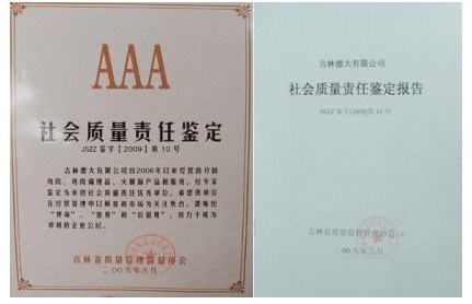 吉林德大有限公司獲社會(huì)質(zhì)量責(zé)任“AAA”稱(chēng)號(hào)