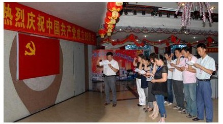 2009年7月1日,德大公司黨委舉行了“熱烈慶祝中國共產黨成立88周年”紀念活動,大會由公司黨委書記陳玉和同志主持,新黨員進行了入黨宣誓,公司黨委副書記劉忠臣同志在大會上做了黨建工作報告,公司總裁于建平同志到會做了重要講話。公司黨委委員、基層黨支部書記、優秀黨員代表、入黨宣誓新黨員參加了會議,公司副總裁劉繼仲等領導應邀參加了會議,黨的積極分子和工會小組長列席了會議。